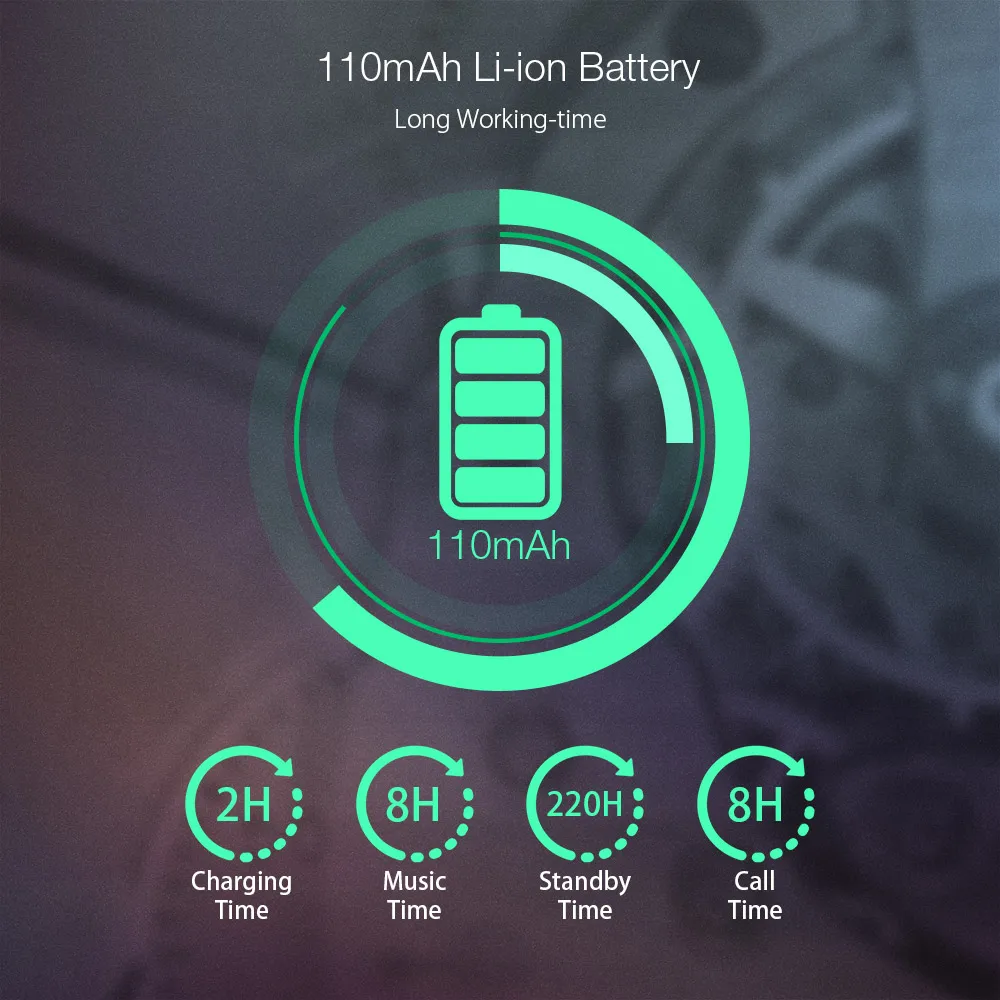 6.Длительное рабочее время-Литий-ионная батарея 110 мАч позволяет вам наслаждаться звонками и музыкой до 8 часов.