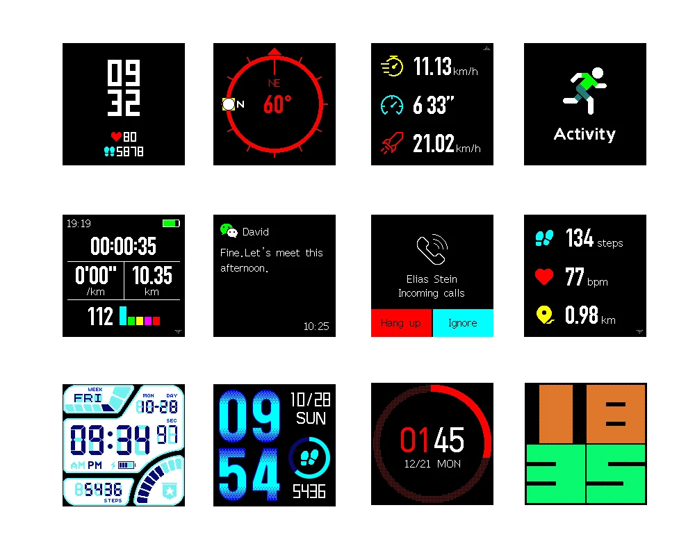 | Дисплей | Тип экрана: 1.28 дюймов, емкостный Разрешение: 176*176 пикселей Режим работы: сенсорный экран |